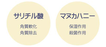 「乳酸」「グリコール酸」「サリチル酸」が約40%配合され、さらに保湿力に優れたマヌカハニーがミックスされています。